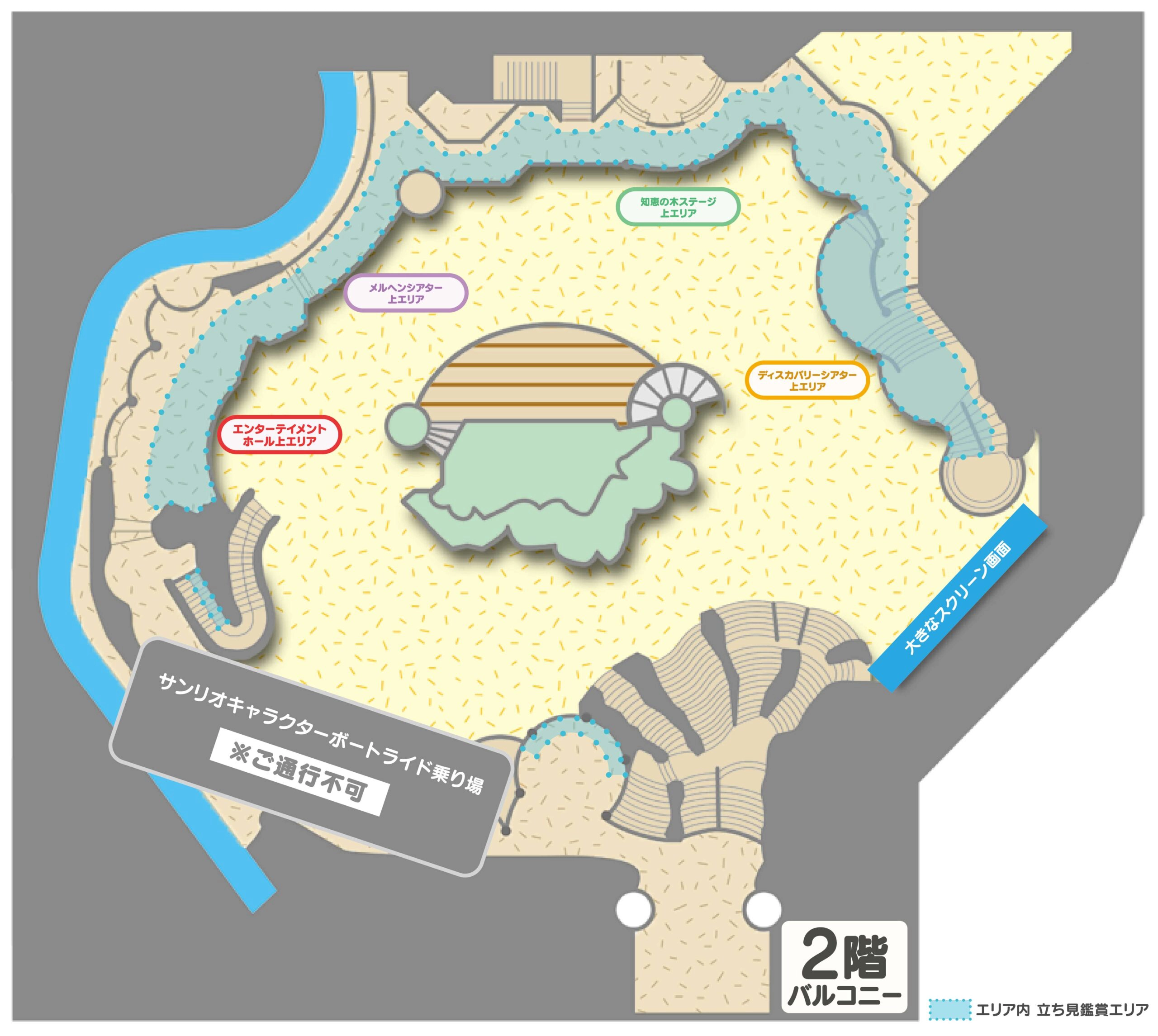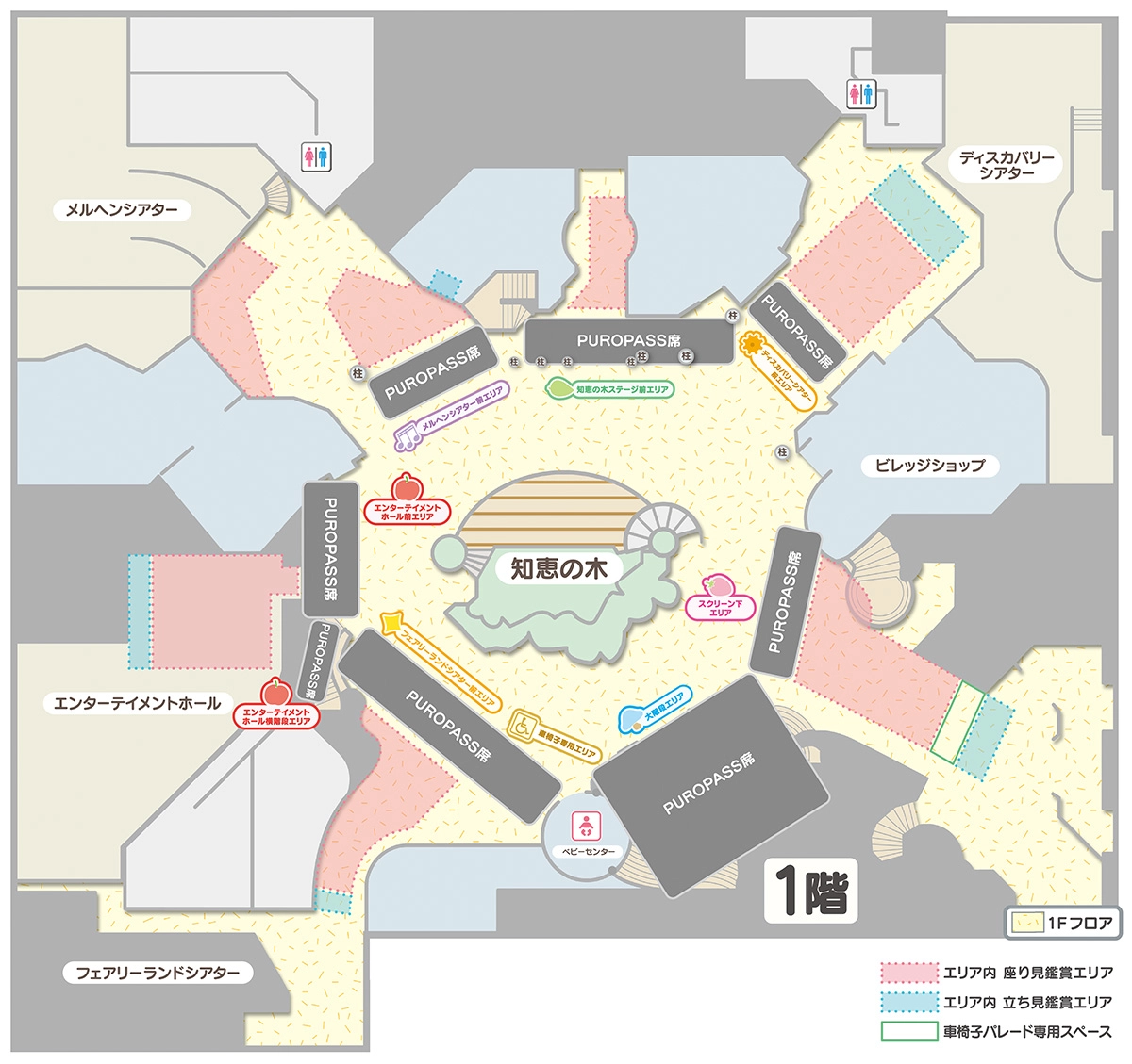 鑑賞エリアは、1Fが座り見中心、2Fは立ち見エリアとして案内されています